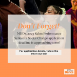 The Public Theater is seeking female dancers to join the ensemble of a new musical in development for a summer Off-Broadway Level 3 Development, with an Off-Broadway production planned for the Fall of 2023, with choreography by Camille A. Brown. Description below: ENSEMBLE DANCERS 20’s-30’s. Black or Latine women. Disabled or non-disabled. Seeking eclectic, athletic, individual, and highly skilled…