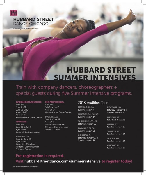 We invite you to take advantage of our upcoming auditions for our 2018 Artist Training Programs. Please pass this along, so we can spread the word to as many dancers as possible! If you would like additional information regarding the Summer Intensive or the Professional Program you can visit: www.hubbardstreetdance.com or contact me directly at kellensohn@hubbardstreetdance.com.