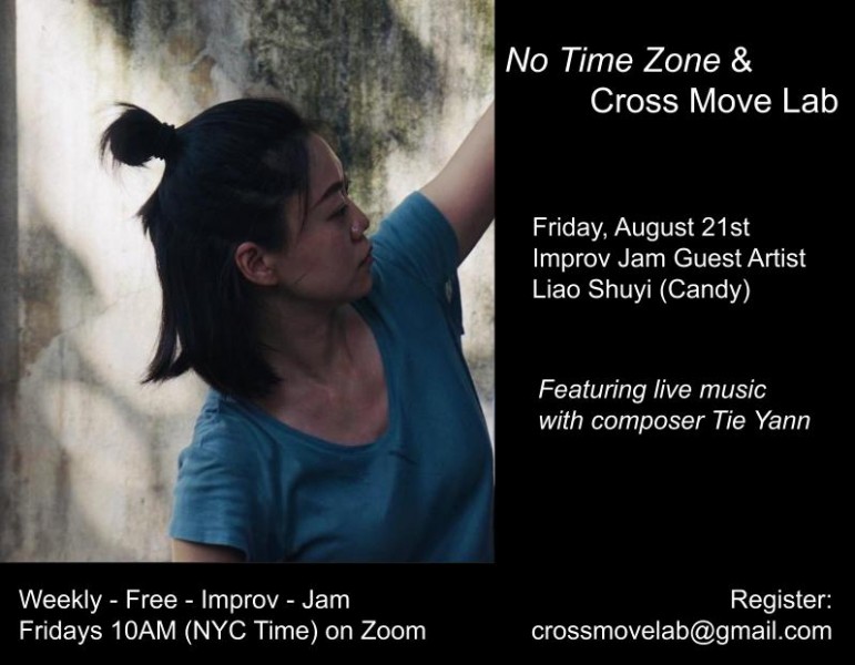 You are invited to join us from wherever you are around the globe for our tenth, free, improv jam No Time Zone on Friday, August 21st! This week, we have a special improv jam planned. We are happy to announce guest artist, Liao Shuyi (Candy), will be the leader of our jam accompanied by live music from composer Tie Yann.