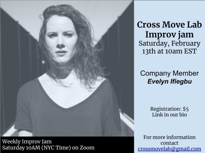 We invite you to join us for our weekly improv jam starting on Saturday February 13th at 10AM EST on Zoom. This week it will be taught by Evelyn Ifiegbu. Each week the leader will be change and will be announced.