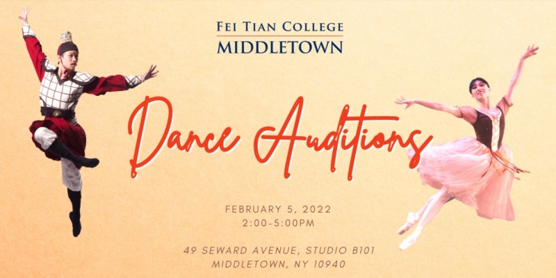 Fei Tian College-Middletown is looking for motivated dancers to join us starting this Fall 2022, or Fall 2023. Auditions are open to high school juniors and seniors and MFA applicants. We offer undergraduate and graduate degree programs for students who would like to specialize in Classical Ballet or Classical Chinese Dance.