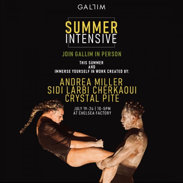 GALLIM’s Summer Intensive is planned for July 19-24th, live at Chelsea Factory in New York City. Participants will experience 6 days of full immersion into the repertory of trailblazing choreographers, Crystal Pite, Sidi Larbi Cherkaoui, and Andrea Miller. Each day will include class, methodologies, repertory, and creative processes led by Andrea Miller & GALLIM artists (BLUSH), Cindy Welik-Salgado (Pite), and Ebony Williams (Cherkaoui). GALLIM is thrilled to be filling both large studios at the newly opened Chelsea Factory, evenings will hold open rehearsal with Andrea Miller and New York City Ballet principal dancer Taylor Stanley, and masterclasses and HAPPY HOUR with Brian “HallowDreamz” Henry, all as part of the Festival of NY.