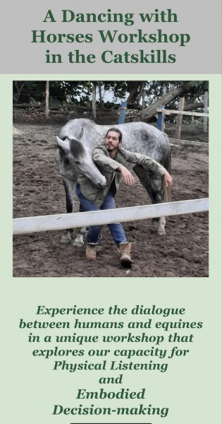 What: Two days of exploration into the interspecies dialogue between humans and equines guided by JoAnna Mendl Shaw in collaboration with Catskill equestrian, equine trainer and musician, Dan McCarthy of Catskill Natural Horse.