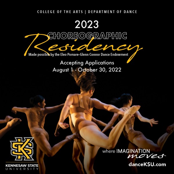 The Department of Dance at Kennesaw State University invites two nationally-emerging or mid-career choreographers to apply for a four-week residency to create two world premieres on the KSU Dance Company. Invited choreographers will audition and select dancers, preferably for ten students, for which they will create an original choreographic 30-minute group work.