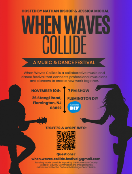 Featuring 8 brand new collaborations, WHEN WAVES COLLIDE is back for its third year running! Artists from NYC, Philadelphia, local counties, and abroad all come together in Hunterdon County to present 8 different cutting-edge works. This festival is not to be missed!