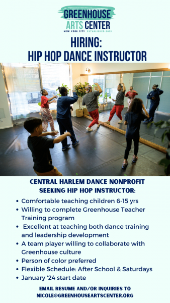 Greenhouse Arts Center is a welcoming place of hope where creativity thrives, using dance and other art forms as a vehicle for the community to grow together, make a difference locally, embrace all cultures, and raise future leaders. We are currently looking for a hip hop instructor who meets the following qualifications: