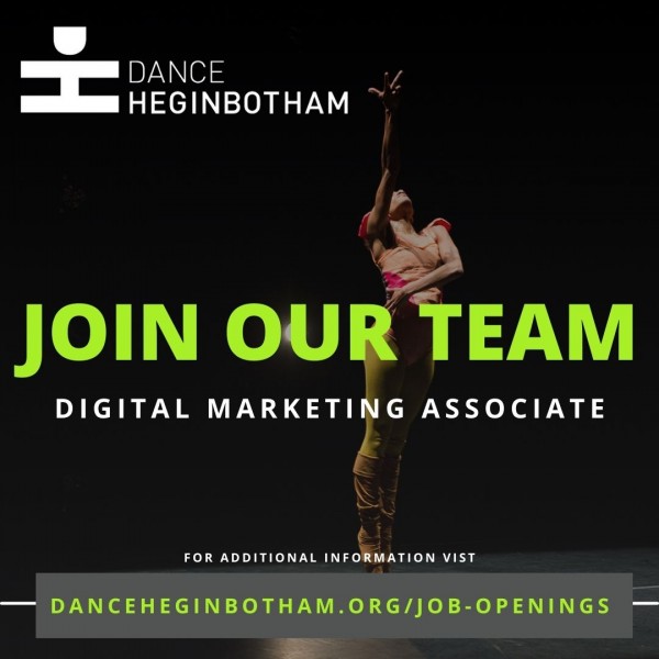Dance Heginbotham seeks a collaborative and dynamic team member to support the company’s digital marketing efforts as we prepare for a robust touring season. Candidates should have previous experience with Canva, MailChimp, CapCut, Facebook, Instagram, TikTok, and/or similar software platforms. Knowledge of the concert dance industry is a plus.