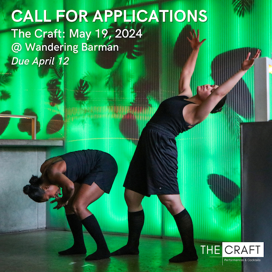 The Craft: Performances & Cocktails is looking for contemporary performance works for our next series. Located at Wandering Barman in Williamsburg, The Craft aims to celebrate and provide a platform for local NYC craft through performance and cocktails.