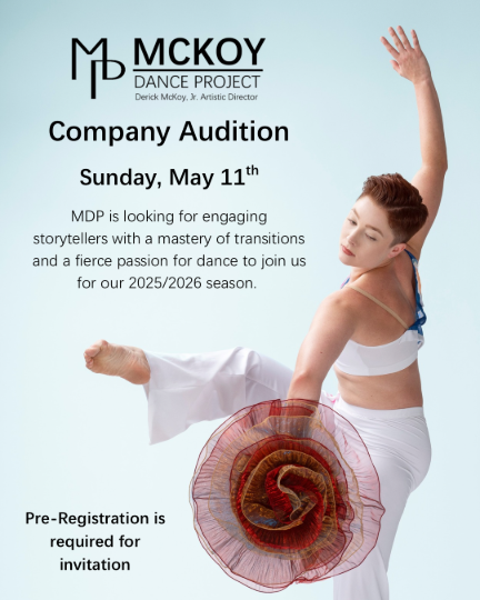 McKoy Dance Project is seeking dynamic, stage commanding dancers to join us in our 2025/2026 season! Dancers must have confident and strong partnering skills. BIPOC and queer dancers are HIGHLY encouraged to apply. All genders are welcome.