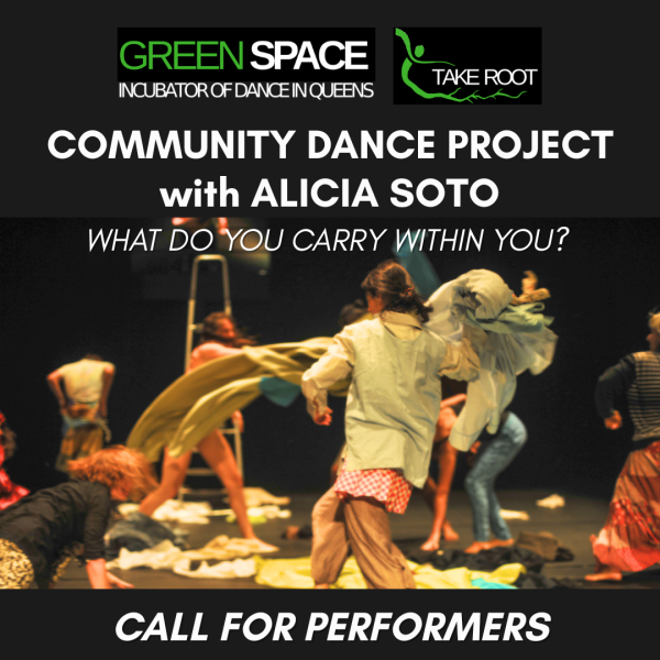 This workshop and performance will be directed and choreographed by Alicia Soto, in collaboration with and assisted by Valerie Green, Artistic Director of Dance Entropy/Green Space as part of Green Space's TAKE ROOT Series.