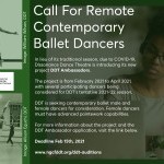 Amanda Selwyn Dance Theatre is seeking athletic, modern MALE DANCERS with strong technique, creativity, and performance experience to join the company for the 2021-2022 season which will include an October Open Rehearsal, Holiday Preview Performance, and Full Premiere at NYLA in April. Company rehearses MONDAY and WEDNESDAY afternoons 2-6 p.m. plus some mornings. For April Season, Dancer must be…