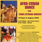 Afro-Cuban Dance Classes in the Lower East Side with Isabel Estrada-Jamison Fridays in August 2024 5pm Afro-Cuban Dance 6:30pm Rumba Dance
