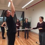 a teacher demonstrates a back cambre in a class at the Balance Arts Center