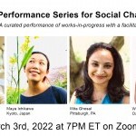 Mark DeGarmo Dance continues its transcultural transdisciplinary Virtual Salon Performance Series for Social Change monthly through June 2022 to an international audience on Zoom with performances featuring 4 global performing artists from Olathe, KS, Kyoto, Japan, Pittsburgh, PA, and Oak Park, IL-- Mita Ghosal (Pittsburgh, PA), Winifred Haun (Oak Park, IL), Maya Ichikawa (Kyoto, Japan), and Garima…