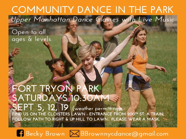 Upper Manhattan Outdoor Dance Classes led by Becky Brown with Live Music.