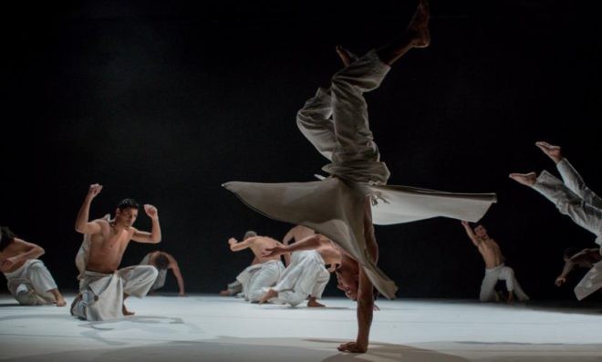 Compagnie Hervé KOUBI is an all-male French Algerian and Burkina Faso dance company that incorporates hip-hop sensibility into capoeira, martial arts, and contemporary dance.