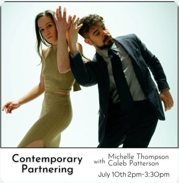 Please join us for a co-taught Contemporary Partnering class with Michelle and Caleb at Amanda Selwyn Dance Studio at 412 Broadway 2nd Floor Manhattan on Thursday July 10th from 2pm-3:30pm. The class will start with a warm up, move to foundational partnering exercises and skills, and then learn partnered choreography. Come with a friend or by yourself and we will pair you up. Michelle and Caleb have been partnering and creating work together for over 7 years, and they enjoy the opportunity to bring their skills and process to others. Thank you to Amanda Selwyn Dance Studio for this opportunity to teach and connect once a month. Sign up to save your spot or sign up in person. https://docs.google.com/forms/d/e/1FAIpQLSfkCN1NbyFI8tckLiIUBBg3z1i65h8ijwt2y-9NqLtXq_V39Q/viewform