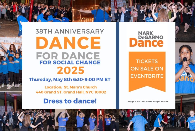 Mark DeGarmo Dance’s Dance for Dance for Social Change 2025 celebrates MDD’s 38th anniversary as a leading NYC not-for-profit dance organization dedicated to education, performance, and intercultural community-building. The community event celebrates our 38-year commitment to provide our evidence-based dance program to the least-resourced public elementary students, schools, families, and communities of color across all 5 NYC boroughs. Without our support, funding, and dedication there is usually no dance education provided by these schools. The celebration includes a presentation with refreshments, silent auction, dance lesson, dancing, and students performing. We honor internationally renowned classical ballet teachers and practitioners, Andra Corvino and Ernesta Corvino with our "Educational Visionary" Lifetime Achievement Award 2025.