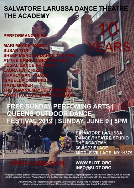 Salvatore LaRussa Dance Theatre celebrates the 10th ANNIVERSARY YEAR of our annual Queens Outdoor Dance Festival, FREE SUNDAY PERFORMING ARTS!! The festival will take place at our Queens, NY studio, SALVATORE LARUSSA DANCE THEATRE-THE ACADEMY, located at 66-85 73 Place, Middle Village, NY 11379 | OUTDOOR STAGE!!