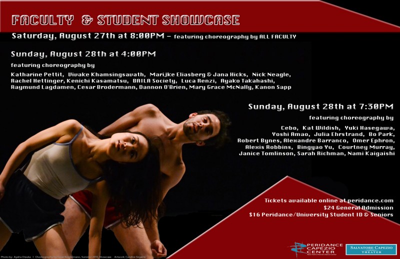 Presented at the Salvatore Capezio Theater at Peridance, the bi-annual Faculty and Student Showcases demonstrate the artistry and talent of Peridance Capezio Center's faculty and students, within a vast array of choreographic styles. These performances are a major highlight at Peridance and are known for their exciting, diverse, and high-caliber quality.