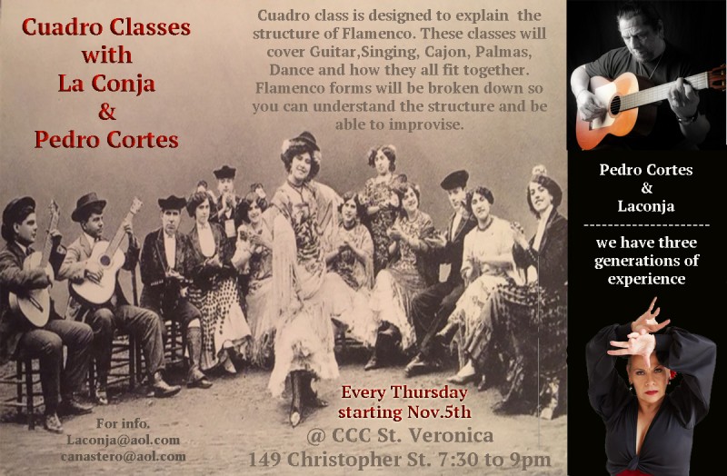 Cuadro Class will work on all the different forms in Flamenco & how they work together.