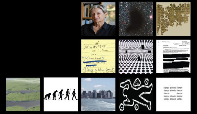 Fragments, Lists & Lacunae focuses on three college students who are taking a course about gaps, holes, blanks, and white space – examples include the 18-minute gap in Nixon’s White House tapes, Sappho's poetry, Swiss cheese, the 12 Steps, and the politics of "disappearance." In a series of nine lectures, their professor offers multi-media provocations on absence, silence, negation and nothingness. Meanwhile, the students’ class notes and their personal notes to each other – all projected overhead – dramatize the lived meanings of the course’s concepts. Offering this investigation into the dynamics of absence and presence, the professor is played by philosopher and queer theorist Judith Butler.