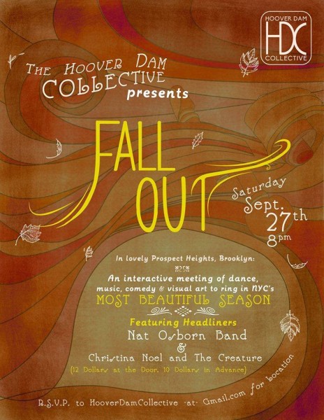 The Hoover Dam Collective (HDC) is a Brooklyn- based arts collective which has been producing large scale collaborative shows throughout the New York City since May 2010. On Saturday, September 27th, the HDC combines forces with several talented curators to produce one of their grandest events to date: an immersive evening of dance, music, poetry and visual art in an underground treasure of a loft space in Prospect Heights.