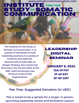 As the Institute for the Study of Somatic Communication crafts formal, flattened hierarchal, organizational structures on multiple continents, the present directorial board is in pursuit of individuals to hold leadership positions in a variety of global locations and expertise.