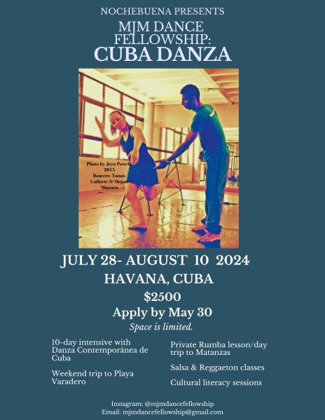 Study with the renowned Danza Contemporánea de Cuba in Havana this summer! Join dancers from around the United States and travel as a part of an MJM Dance Fellowship to partake in a 2 week, 10 day technique, choreography, and pedagogy intensive.