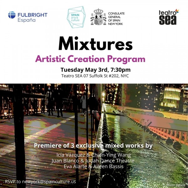 Mixtures is a collaborative program between Spanish and American artists based in NYC that work in different fields. The main goal is to create works that combine two artistic disciplines in order to generate new work dynamics and promote cultural exchange. The participating artists have been working for 3 months creating genuine works mixing different disciplines.