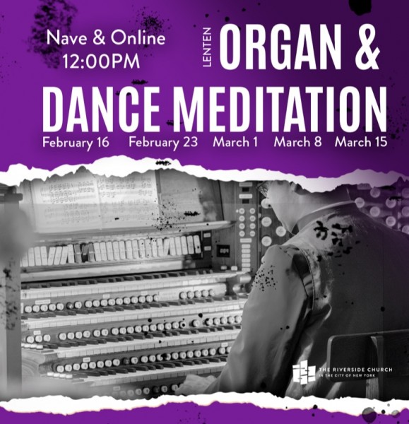 Join us for a unique experience this Lenten season at The Riverside Church at 490 Riverside Drive, New York, on the first five Fridays in Lent for a harmonious blend of music and movement during our Organ and Dance Meditations.