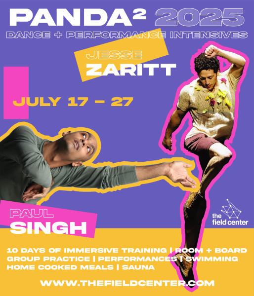 PANDA [Performance And New Dance Arrivals] are some of the longest programs offered at the Field Center and they are deep dives into living with one another as artists while training daily with established teachers in the field. Daily classes are punctuated by swims in the river, saunas, fresh food from our gardens, long naps in the library, field trips and performances at night.