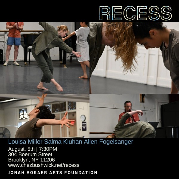 The real-time composition for RECESS is titled Sun Burning, inspired by the fade of natural light as the piece unfolds. The slow burn of the setting sun combines with the electronic sound palette to produce a hot and tangy environment for movement. Or something else, if the sun is obscured by clouds.