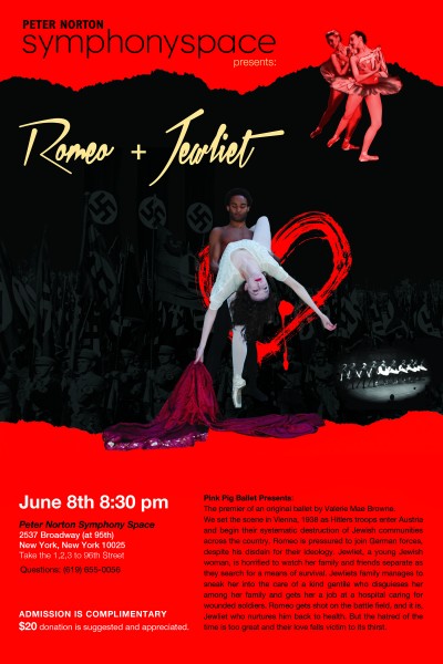 We set the scene in Vienna, 1938 as Hitlers troops enter Austria and begin their systematic destruction of Jewish communities across the country. Romeo is pressured to join German forces, despite his disdain for their ideology. Jewliet, a young Jewish woman, is horrified to watch her family and friends separate as they search for a means of survival. Jewliets family manages to sneak her into the care of a kind gentile who disguieses her among her family and gets her a job at a hospital caring for wounded soldiers. Romeo gets shot on the battle field, and it is Jewliet who nurtures him back to health. But the hatred of the time is too great, and their love falls victim to its thirst.