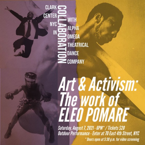 For this production Clark Center NYC in collaboration with Alpha Omega Theatrical Dance Company present Art and Activism - The Work of Eleo Pomare. His work continues...