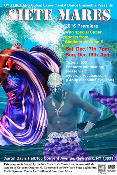 A dance drama performance which reflects the cultural perspective and dance identity based on the history and the mythology of Afro-Cuban Culture, “Siete Mares” is the third of the Patakin (mythological story) series, written, choreographed and directed by Danys Perez "La Mora" a?? an international Afro-Cuban folklore master specialist, from Santiago de Cuba.