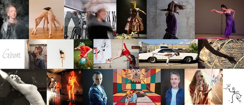 Photos: top row – John Jasperse by Alex Escalante; Athena Malloy & Connor Voss by Marcus Morris; Jon Kinzel by Christine Regan; Edisa Weeks by JD Malone; Jimena Paz by Baranova; Jennifer Miller by Anja Hitzenberger/middle row – “Given” by Wally Cardona; Vicky Shick by Alan Mandell; Ambika Raina by Yekaterina Gyadu; EllenFisher by Ben Stechschulte; Magda San Millan by John C. Hawthorne; Stuart Shugg by Satoshi Tsuchiyama; Carolyn Hall by Kelly AuCoin/bottom row – Aileen Passloff by Robert Farren; Lucy Sexton by Lori E. Seid; Christen Clifford by Baranova; Gregory Corbino; Mike Albo by Ali Levin Photography; Keely Garfield by Paula Court; “Shorties” by CW