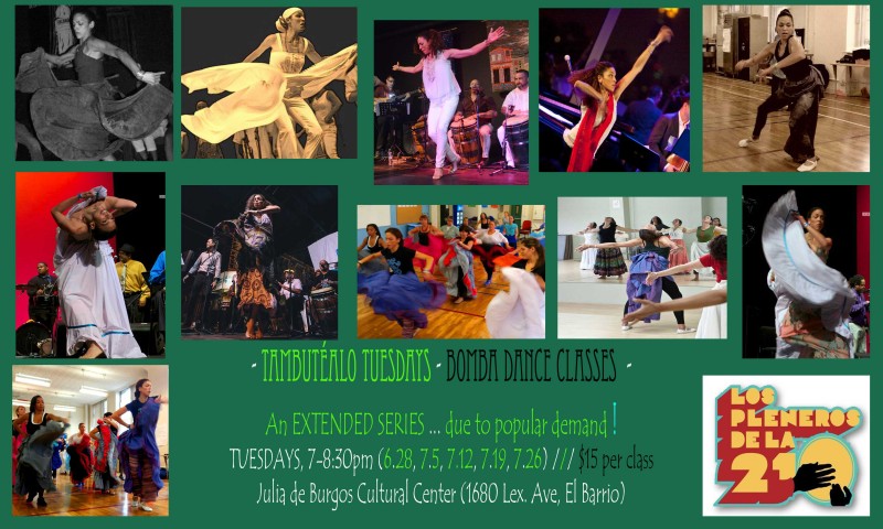 After an explosive 5 weekly sessions in May and June 2016, Los Pleneros de la 21 are excited to announce, due to popular demand, an extension of the Summer Bomba dance classes - for another 5 consecutive TUESDAYS