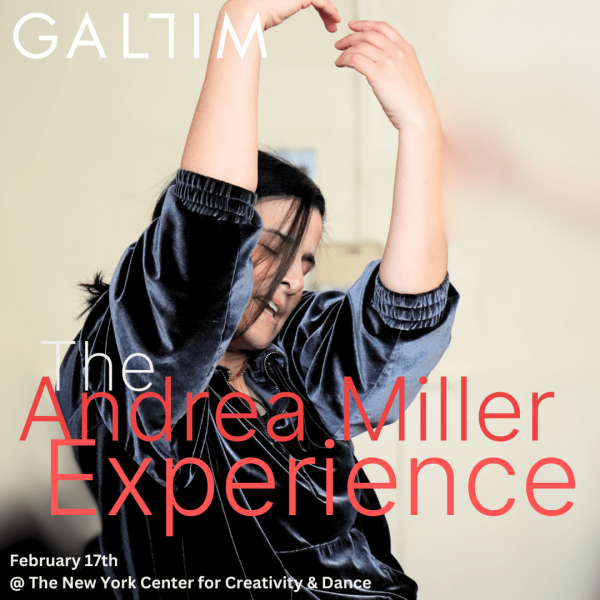 Experience a full day of GALLIM Methods, repertory coaching, and Creative Inquiry with GALLIM’s Founder, Choreographer, and Artistic Director Andrea Miller!