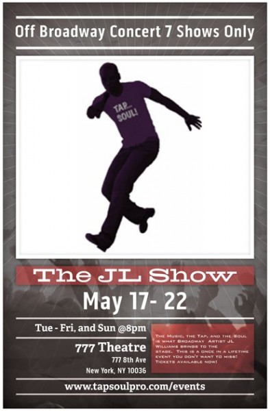 Tap Soul Productions will bring back "The JL Show" an original tap dance and soul music concert, May 17th thru May 22nd, 2016 at the 777 Theatre 777 8th Avenue, 2nd Floor New York, NY 10036.