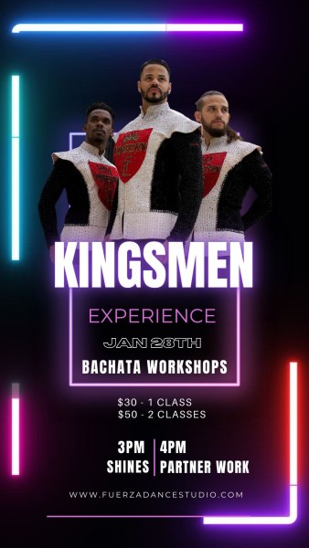 Join us at Fuerza Dance Studio on January 28th from 3-5pm for The Kingsmen Experience Bachata Workshop. This is a rare opportunity to dance with The Kingsmen in NYC, and we can't wait to share our love of Bachata with you.