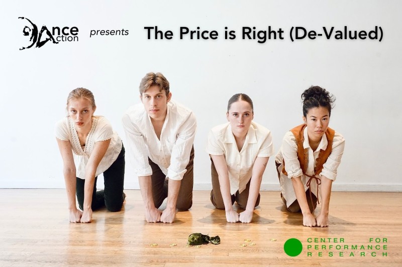 DanceAction presents "The Price is Right (De-Valued)," a full-length interactive performance that reflects and explores the concept of devaluation and self-value in relation to labor, economics, and social justice. This piece introduces the format of the famous TV show, "The Price is Right," into an interactive experience where the audience will support four performers participating in a competition to determine the right price for various items. Scanning a QR code with their smartphones, the audience will connect to an online poll system where they will select the price or vote on the value of the items displayed. The participant who earns the most points will take home a surprising award!