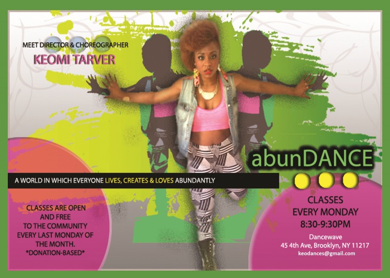 I will be teaching a mixture of Hip Hop, Salsa and African Dance! Classes are 8:30-9:30pm;