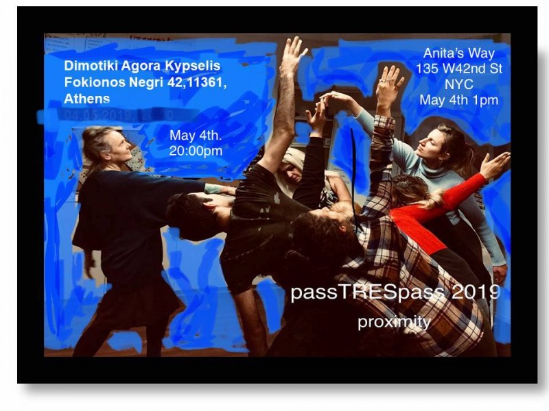 We invite you to witness this experimental dialogue in vocalized movement and physicalized narrative between passTRESpass members here and abroad, live-streamed at Dimotiki Agora Kypselis at 8pm on Saturday the 4th of May 2019 in collaboration with Impact Hub Athens and the Pierce- The American College of Athens.