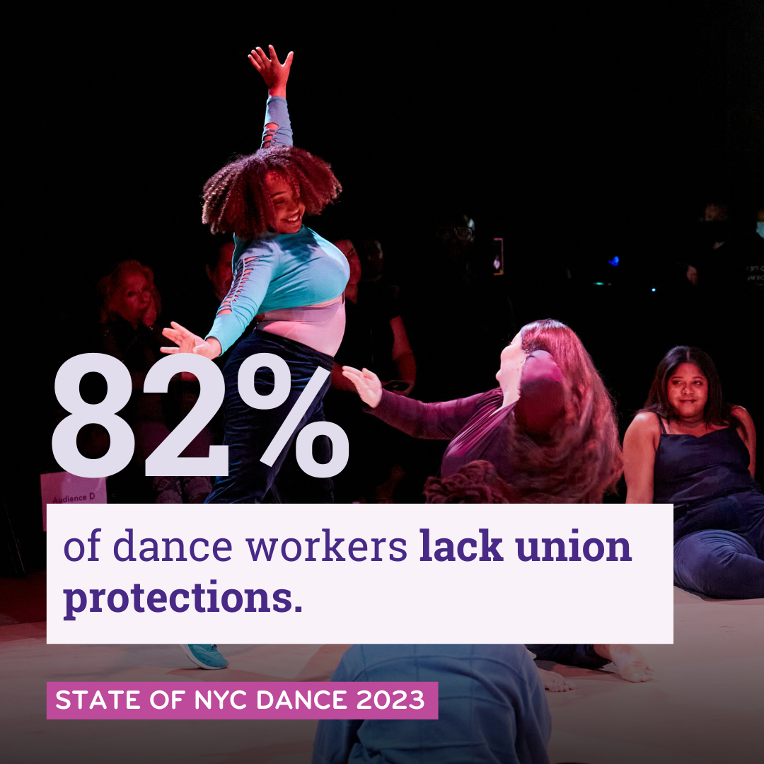 The State of NYC Dance 2023 Report found that despite 58% of dance workers believing they do not earn fair wages, 82% of dancers lack union protections. This, however, is shifting. The American Ballet Theatre voted to strike this past February, marking the first time that American Guild of Musical Artists has authorized a strike since 2018. In August, the unionized Alvin Ailey American Dance Theater performers won an increase in guaranteed workweeks, compensation increases, guaranteed meal access, and more. Also in August, the New York Live Arts workers successfully voted to form a union.