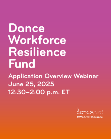 Dance/NYC will host a webinar to provide prospective Dance Workforce Resilience Fund applicants the opportunity to review the application, understand the intention and components of the program and lottery process, and access example contracts. All applicants are strongly encouraged to participate.